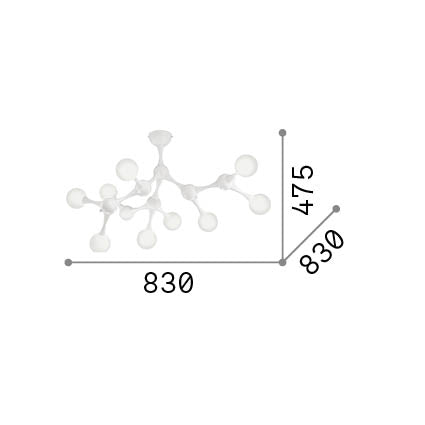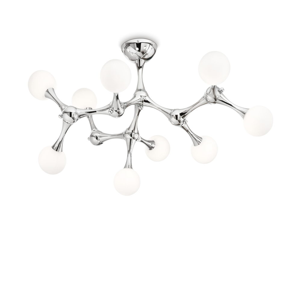 Plafón de techo 9 bolas Ideal Lux Nodi cromo cristal 9 luces 135W Ø83cm 133393
