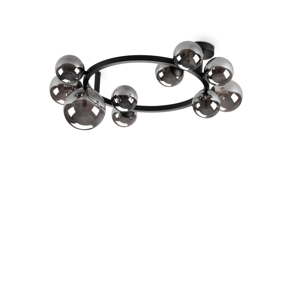 El plafón de techo Perlage de Ideal Lux en acabado fumé, fabricada en metal, cristal, combina el diseño italiano contemporáneo con prestaciones excepcionales.