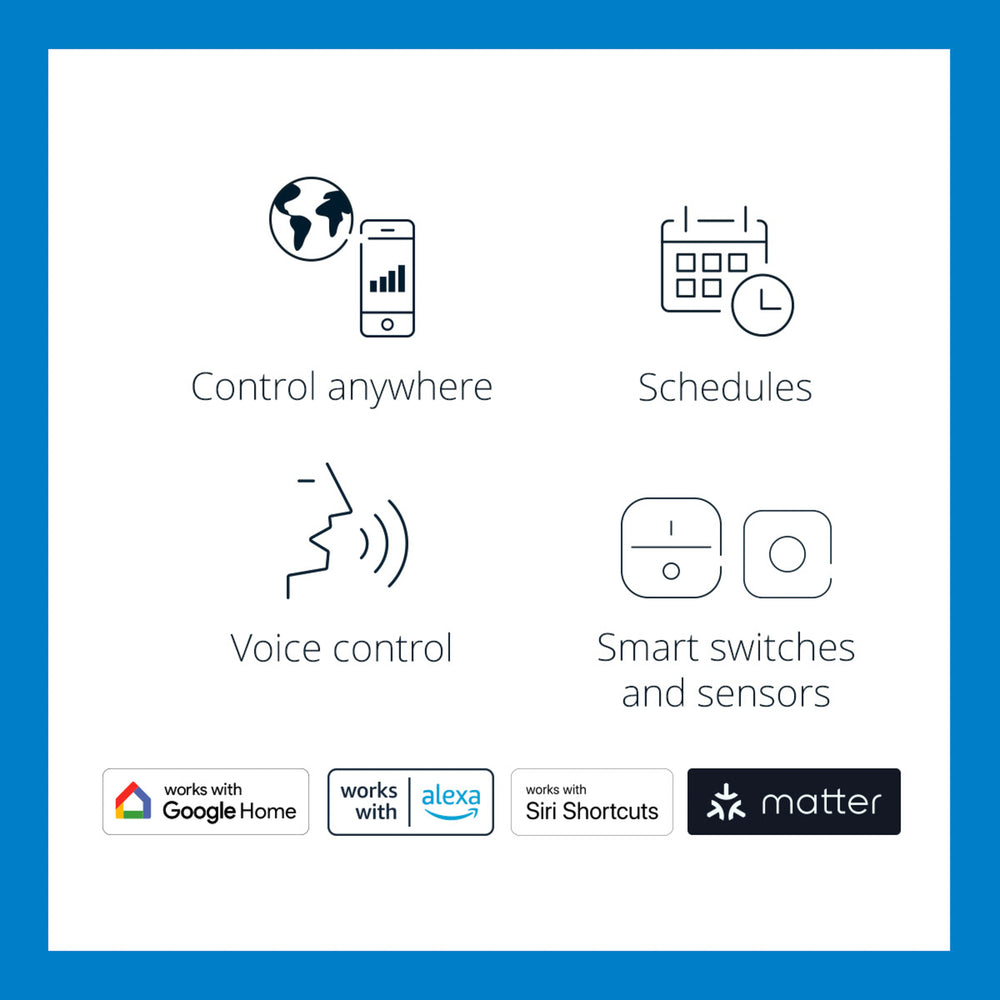 Compatible con: Alexa, Echo, Google assistent, IFTTT, Klikaanklikuit, Samsung Smartthings