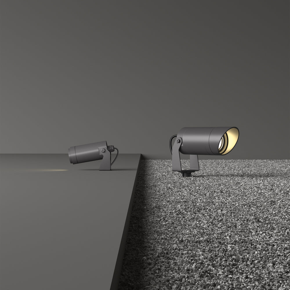 El proyector de exterior Starlight de Ideal Lux en acabado gris, fabricada en metal, está diseñada para soportar condiciones exteriores con su protección IP67, combinando resistencia y diseño italiano.