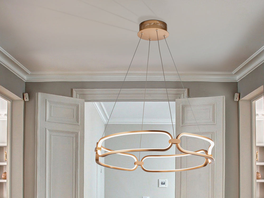 The Schuller Colette ceiling lamp is an elegant and modern piece that will add a touch of sophistication to any space. It is made of brushed aluminum with a rose gold finish, giving it a luxurious and high-quality look. In addition, it is height adjustable, allowing you to adapt it to your needs and preferences.