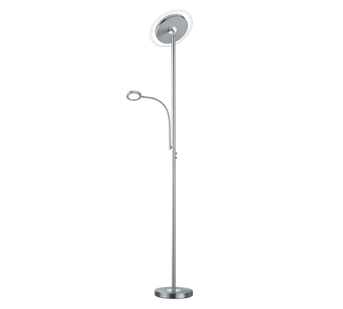 Trio Ackbar LED floor lamp in matt nickel metal. Ideal for lighting up your living room / dining room and bedroom. Reference R42752107. Flexible, Non-dimmable, Touch On/Off function, Dimmer with sensor. Bulbs incl. 1x SMD LED, 18W · 1x 1700lm, 3000K.