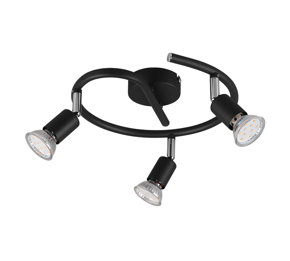 Trio Paris spotlight made of black mat metal. Ideal for giving light to your living room/dining room and bedroom. Reference R80913932. Ceiling mounting, Bulb(s) not included in packaging. Bulbs excl. 3x GU10 · max. 35W.
