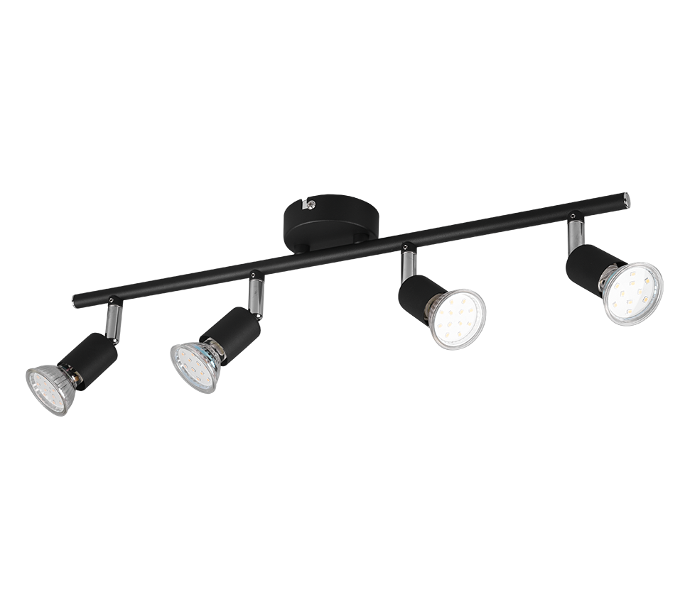 Trio Paris spotlight made of black mat metal. Ideal for giving light to your living room/dining room and bedroom. Reference R80914032. Ceiling mounting, Bulb(s) not included in packaging. Bulbs excl. 4x GU10 · max. 35W.