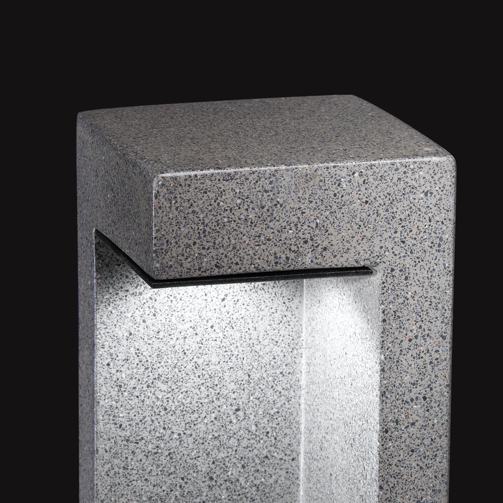 La baliza de exterior Titano de Ideal Lux en acabado granito, fabricada en metal, resina, plástico, está diseñada para soportar condiciones exteriores con su protección IP55, combinando resistencia y diseño italiano.