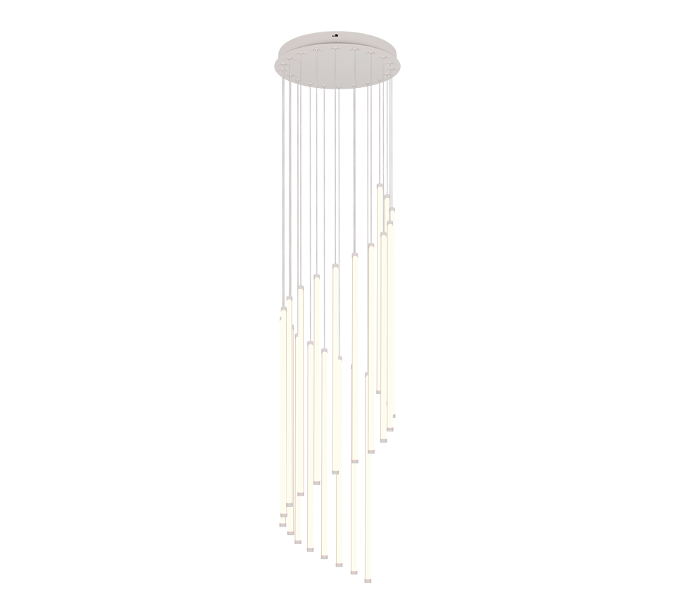 Esta lámpara colgante es perfecta para salones amplios y comedores espaciosos. Su diseño de 20 luces la hace especialmente adecuada para estancias con doble altura, lofts, halls de entrada con techos elevados, escaleras principales o como iluminación central en salones diáfanos de gran formato. Los 20 puntos de luz distribuidos en la estructura circular crean una iluminación envolvente que llena el espacio de luz uniforme y decorativa.