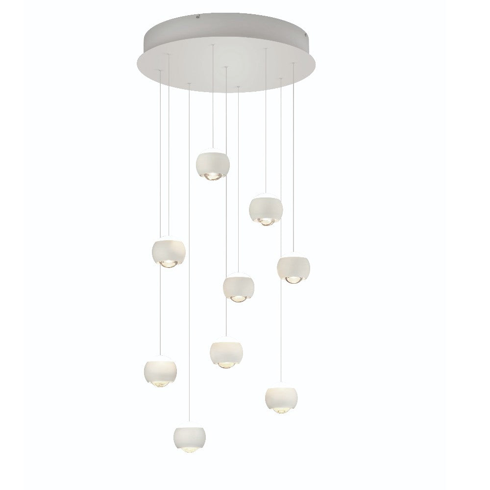 Transforma tu espacio con la lámpara colgante Trio Cannon de 9 luces en blanco, una pieza que une diseño minimalista, funcionalidad y eficiencia lumínica en un solo elemento decorativo que aporta luz y amplitud visual.
