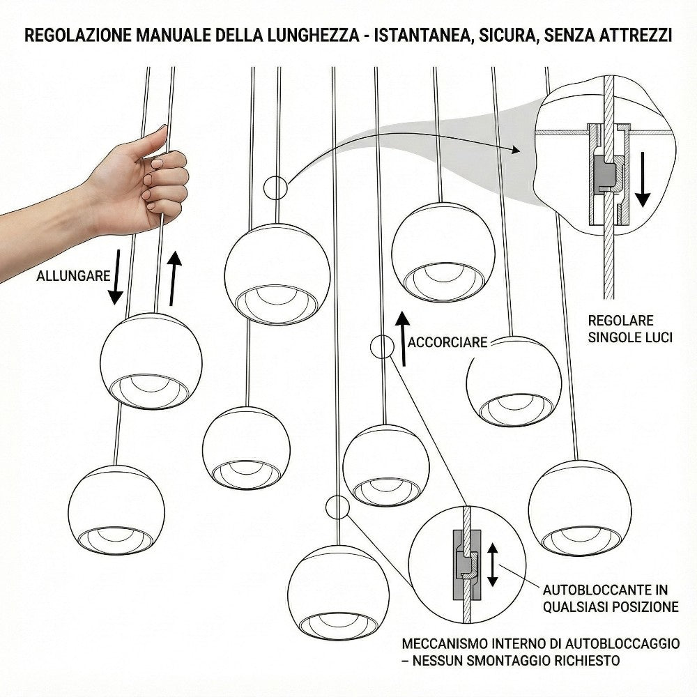 Esta lámpara colgante de 9 luces es perfecta para salones, comedores, dormitorios y oficinas donde se necesita una iluminación principal potente con carácter decorativo. Su diseño limpio y su capacidad lumínica la convierten en la elección ideal para mesas de comedor, zonas de estar, espacios diáfanos o como iluminación central en habitaciones que requieren una fuente de luz con presencia visual equilibrada.