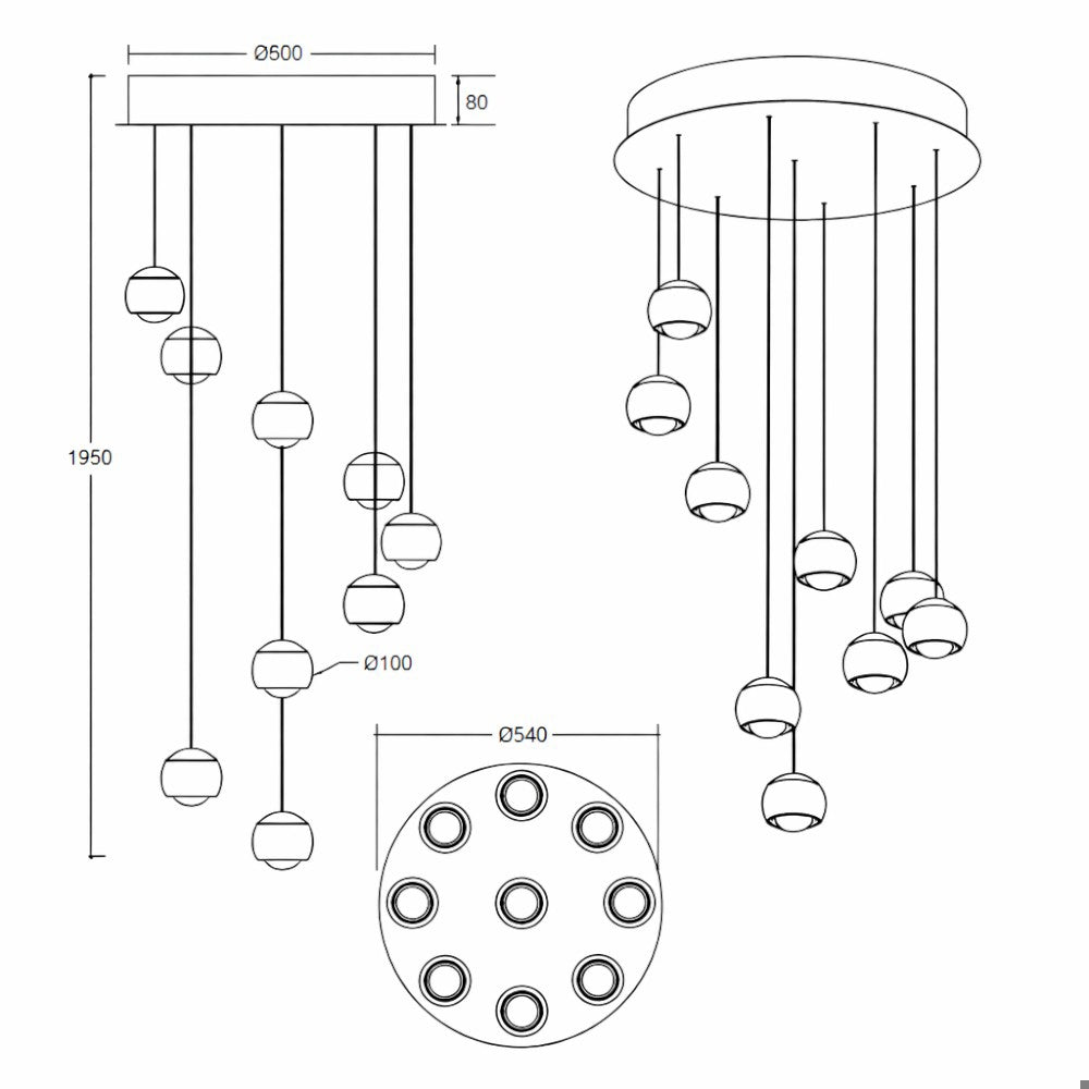 - Número de luces: 9 esferas