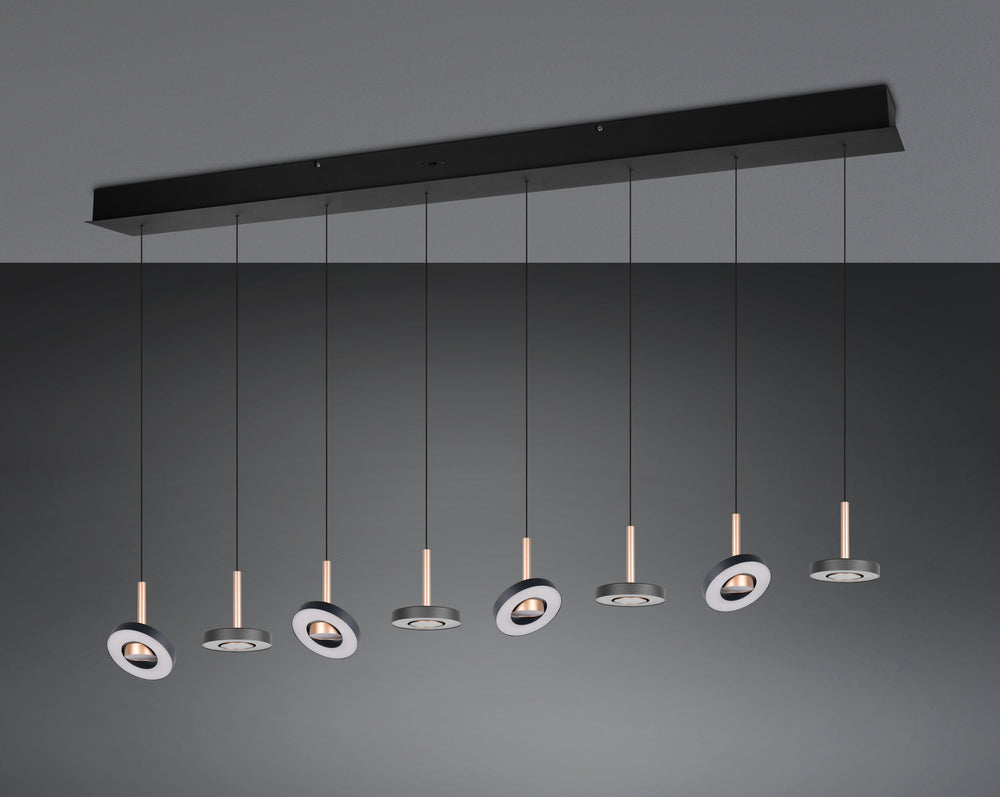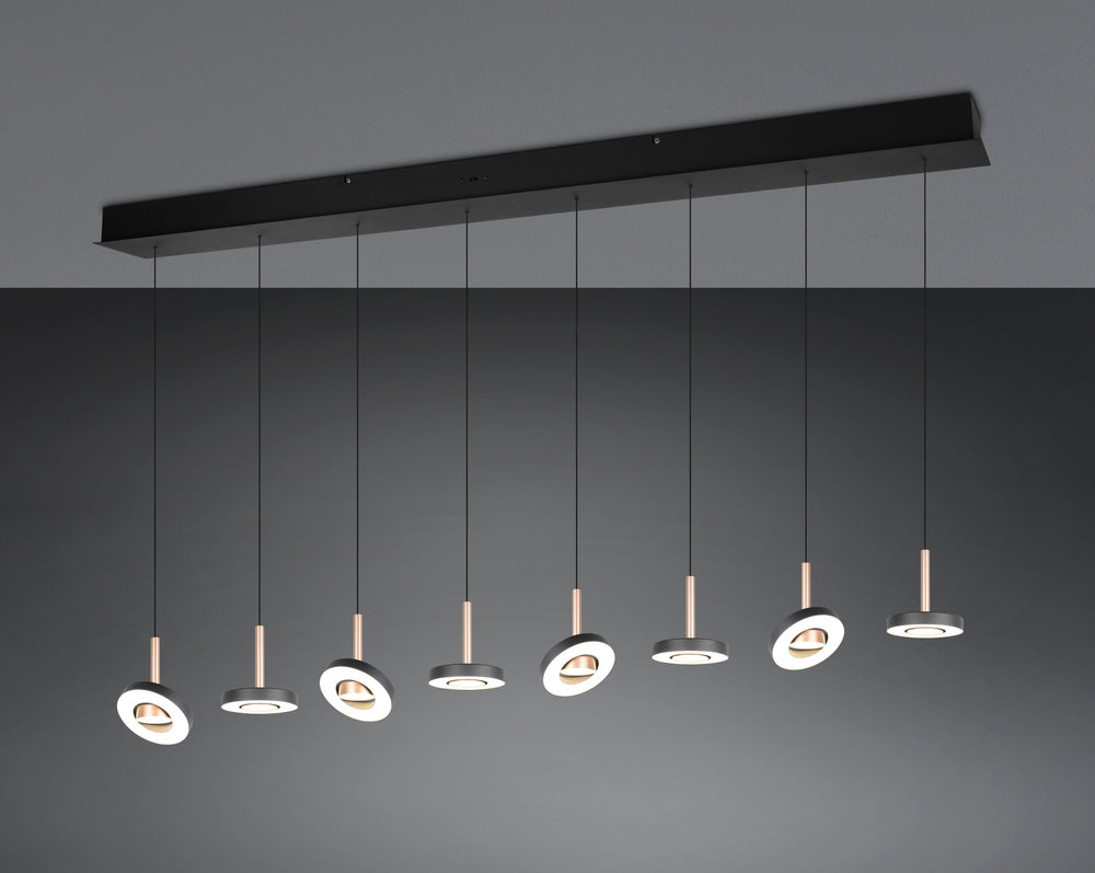 Ilumina con precisión y estilo con la lámpara colgante Trio Guano, una luminaria que combina diseño lineal, control total de la luz y acabado contemporáneo en coffee.