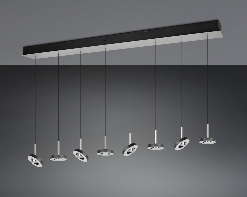 Ilumina con precisión y elegancia con la lámpara colgante Trio Guano en níquel mate, una luminaria que combina diseño lineal, control total de la luz y acabado premium atemporal.
