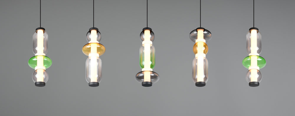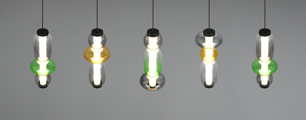 Ilumina con elegancia y versatilidad con la lámpara colgante Trio Minerva multicolor, una luminaria que combina el encanto del cristal con la tecnología LED más avanzada.