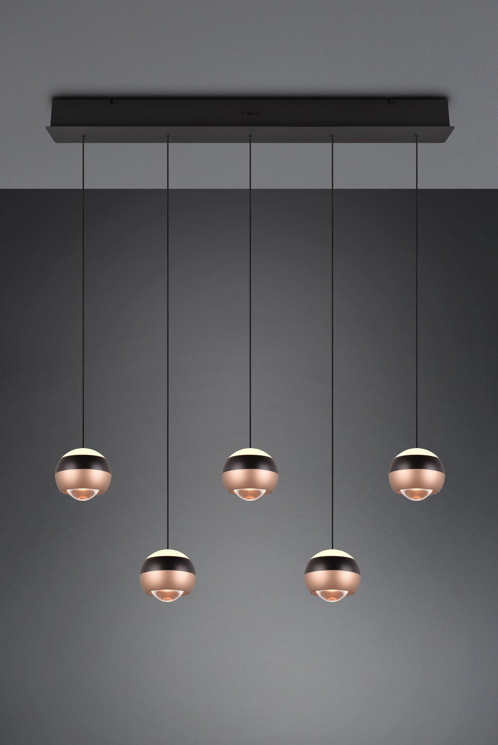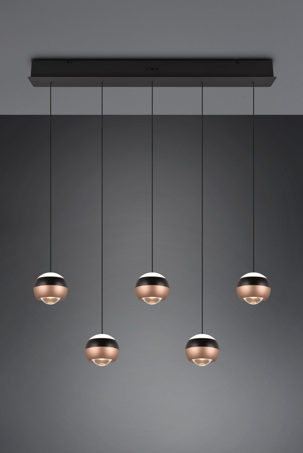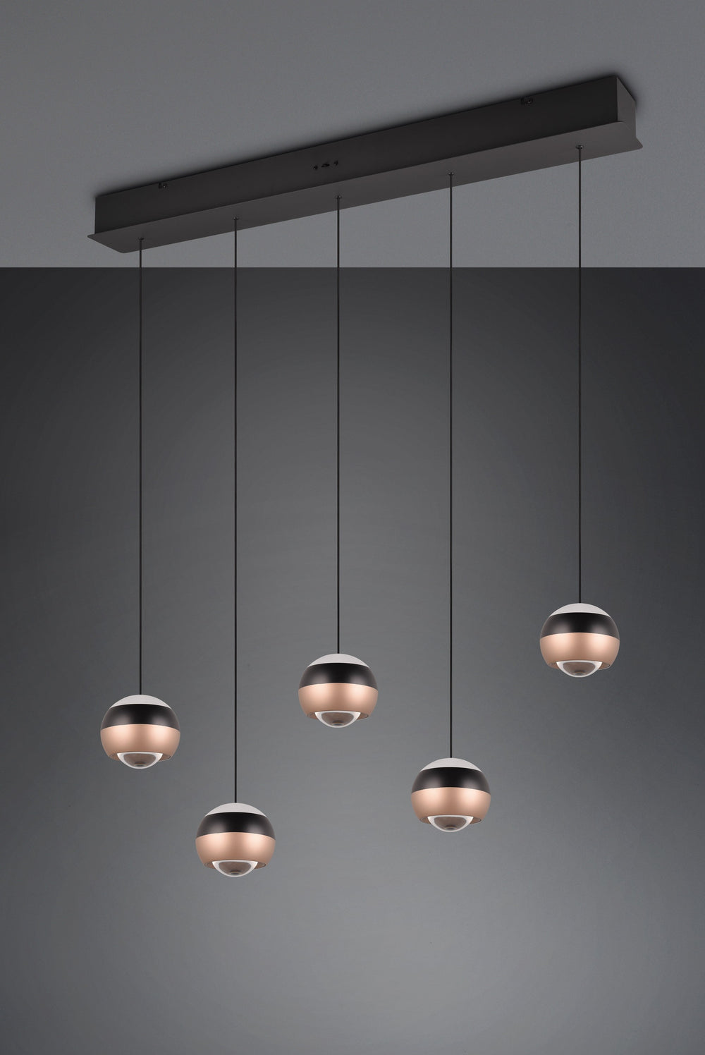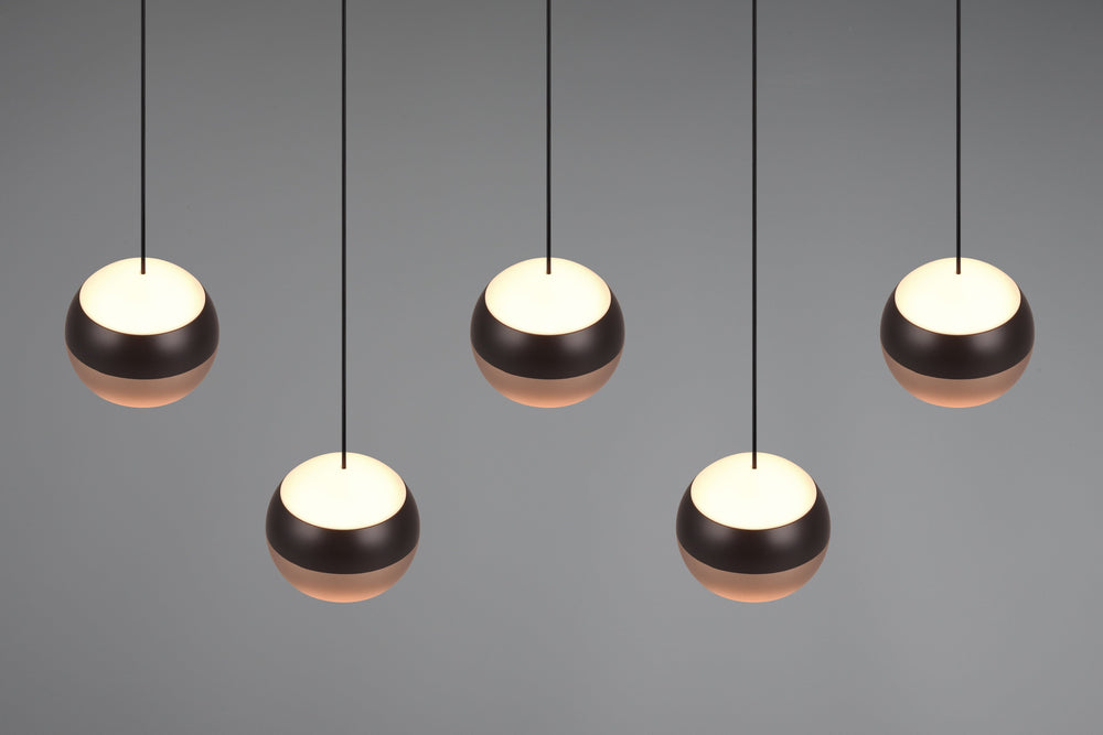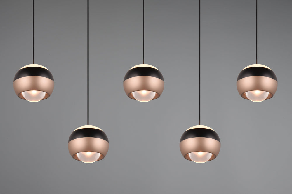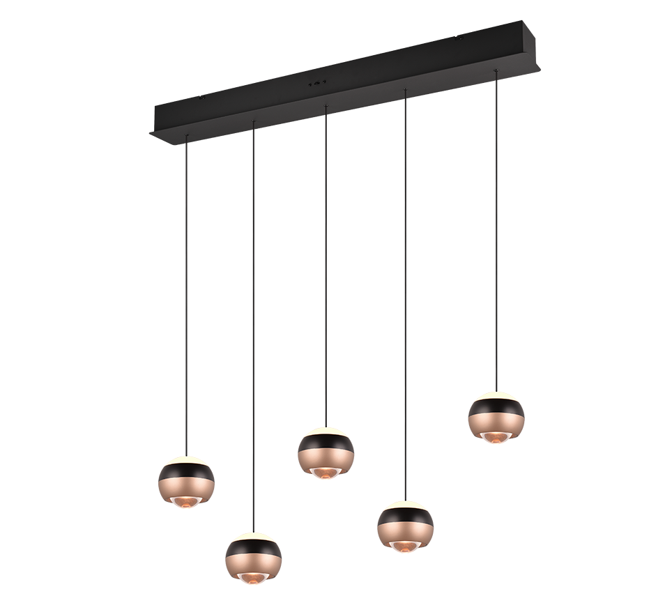 Descubre la iluminación inteligente con la lámpara colgante Trio Orbit de 5 luces en negro mate, una luminaria que se adapta a tu vida y transforma cada espacio según tus necesidades con elegancia contemporánea.
