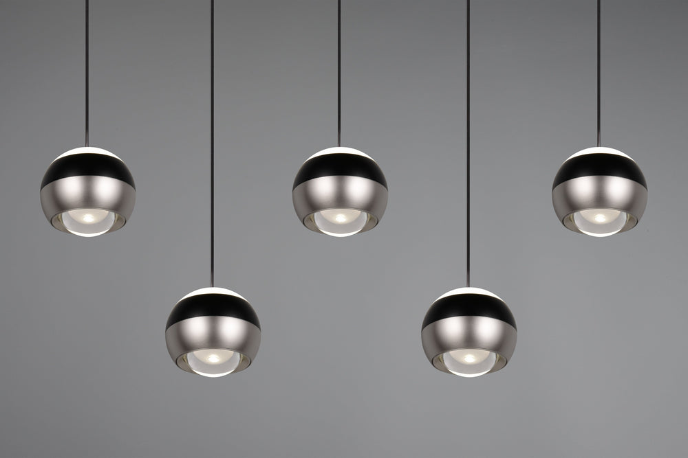 Descubre la iluminación inteligente con la lámpara colgante Trio Orbit de 5 luces en níquel mate, una luminaria que se adapta a tu vida y transforma cada espacio según tus necesidades.