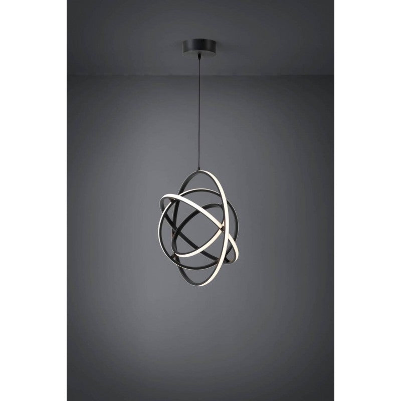 La lámpara de techo colgante Retornio 39893 de EGLO combina acero, aluminio / plástico con acabado negro / blanco. La lámpara colgante LED RETORNIO está formada por tres aros de metal negro con LED internos. Los anillos de metal anidados, móviles y de diferentes tamaños permiten una buena y homogénea iluminación gracias a su disposición y a los LED de color blanco cálido integrados bajo su superficie luminosa de plástico blanco. La lámpara colgante minimalista y esférica se adapta de forma divertida a las tendencias modernas y, con sus 58 cm de diámetro, ofrece un atractivo especial en todas las estancias.