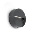 DUNE es un aplique redondo de exterior gris oscuro, ideal para iluminación funcional de señalización en espacios exteriores. Incorpora switch integrado que permite seleccionar entre 4 temperaturas de color: 2200K, 2700K, 3000K o 4000K.