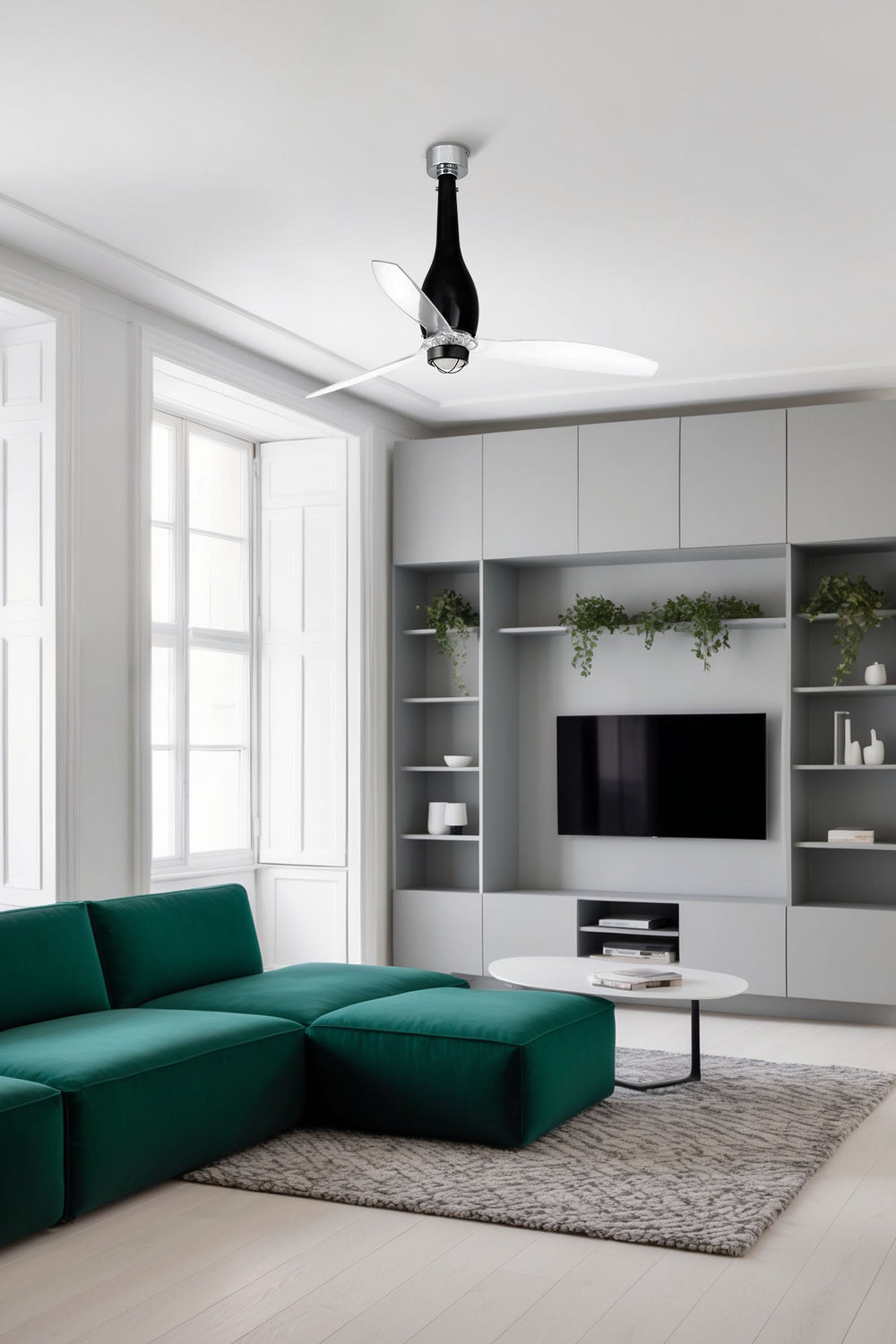 El ventilador de techo Eterfan M LED de Faro combina diseño contemporáneo y funcionalidad. Su acabado en Negro brillo se integra con naturalidad en interiores de distintos estilos. Combina estética moderno y nórdico para adaptarse a interiores con carácter.