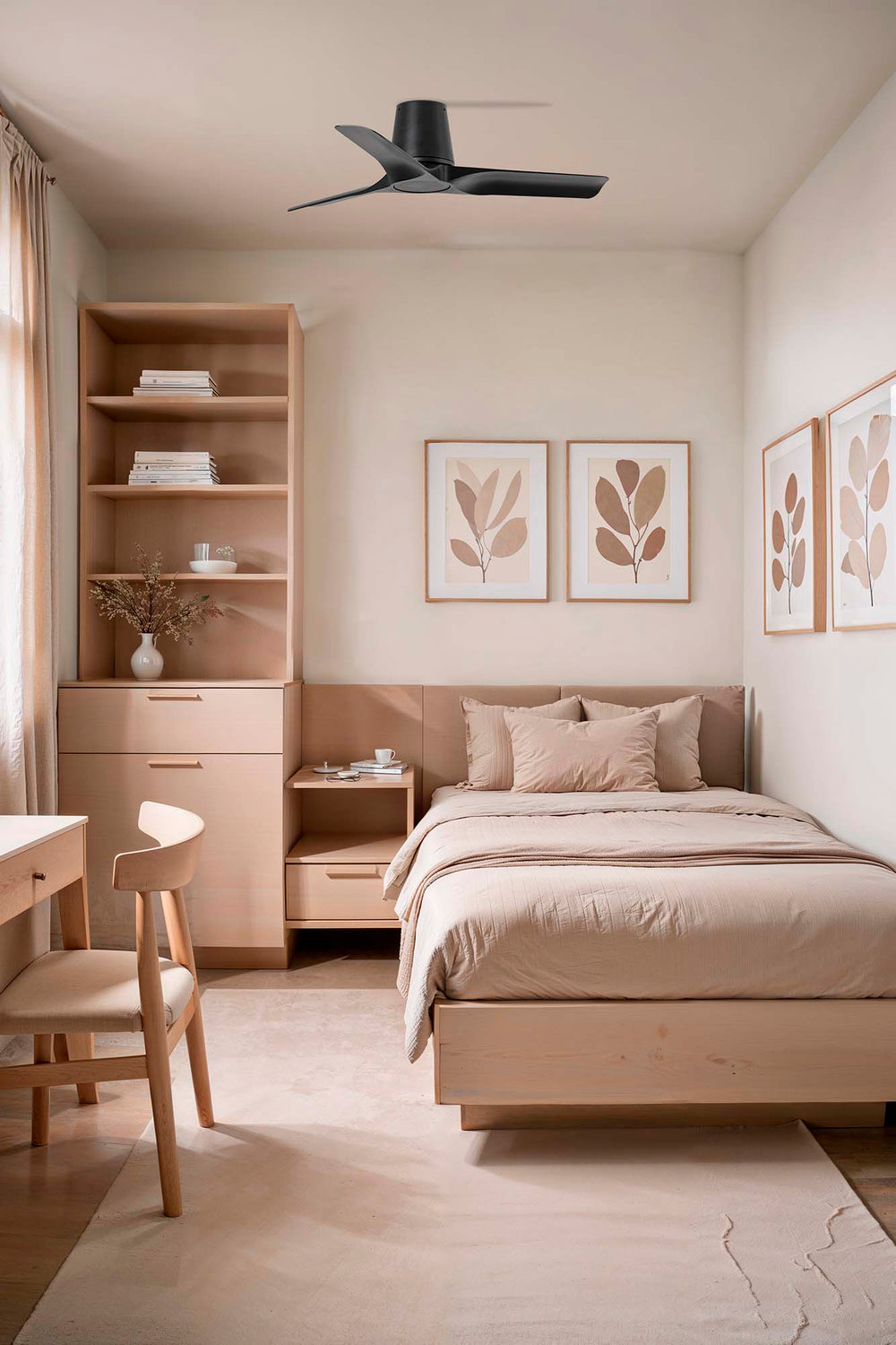 HEY TUB es un ventilador de techo con palas de Faro Lab. Versión negro con 3 palas negras. Sistema Smart Tuya integrado. Versión en plafón, sin tija.