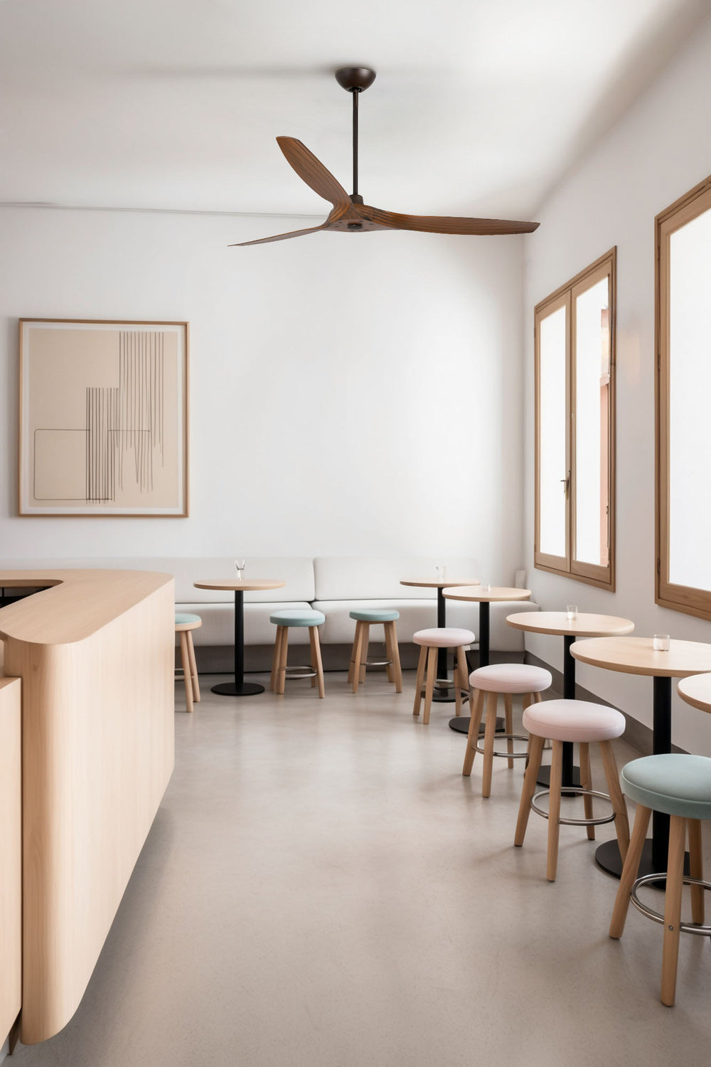 MOREA es un ventilador de techo de estilo moderno y con palas con acabado de madera. Versión marrón con 3 palas de nogal oscuro. Sistema Smart Tuya integrado.