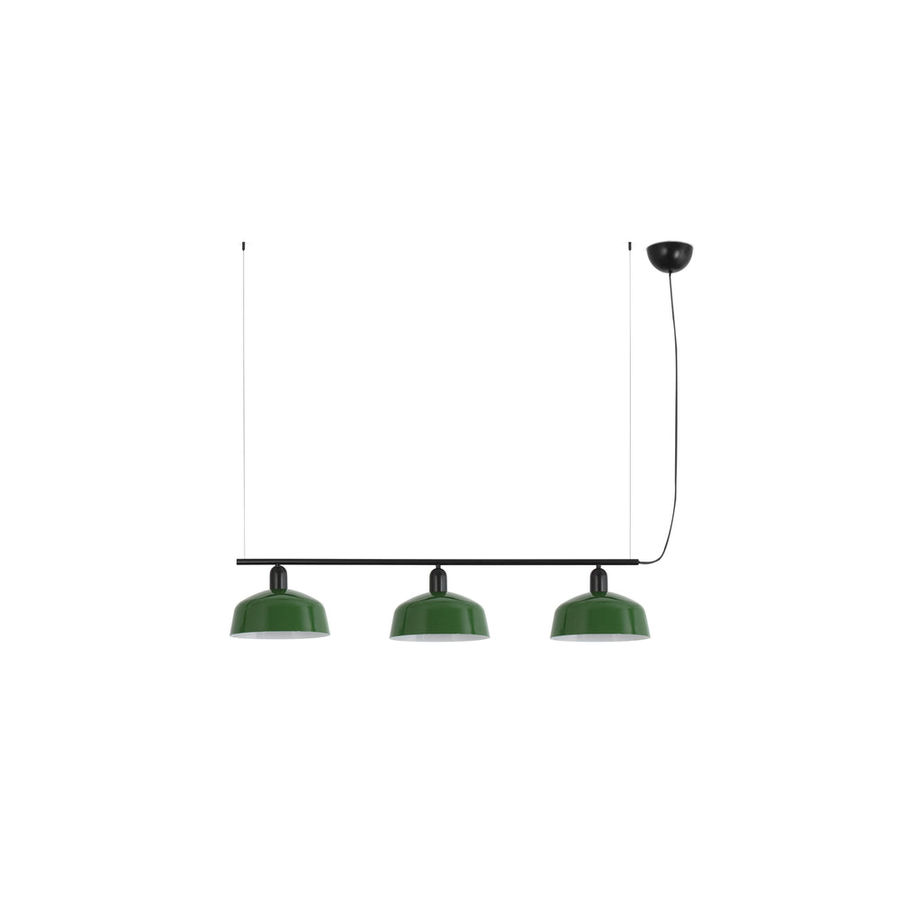 TATAWIN es una lámpara colgante con estructura negra que tiene un diseño clásico y atemporal, gracias a una pantalla metálica verde que ofrece una luz focal.