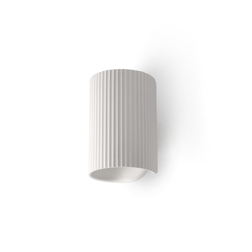 TRAMA es un aplique de yeso que ofrece una iluminación indirecta a la par que decorativa, gracias a sus texturas lineales. Se puede instalar horizontal o verticalmente. Versión con luz unidireccional.