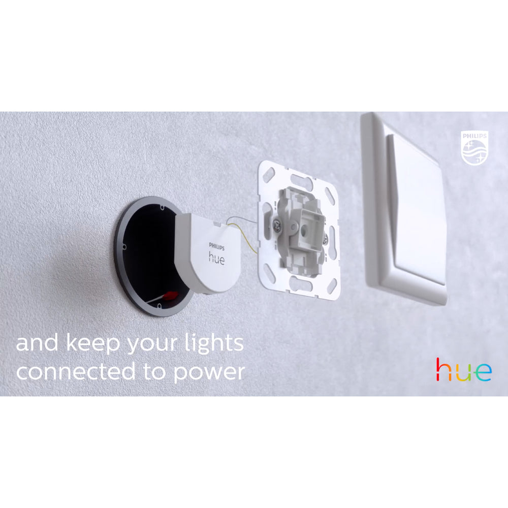 Instalado detrás de los interruptores de luz, el módulo de interruptor de pared Philips Hue te permite usar los interruptores actuales con las luces inteligentes Philips Hue. Las luces siempre permanecen encendidas y accesibles, e incluso puedes usar el interruptor para configurar múltiples escenas en una luz individual o en una habitación o zona.