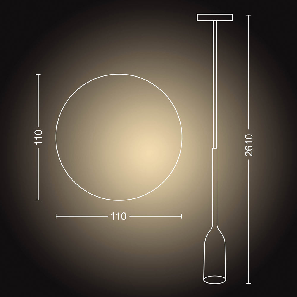 Consigue miles de tonalidades de luz blanca de cálida a fría con el diseño elegante de la lámpara colgante Devote de Philips Hue White Ambiance. Controla al instante la aplicación Philips Hue Bluetooth o añade un Hue Bridge para descubrir la gama completa de características de iluminación inteligente.