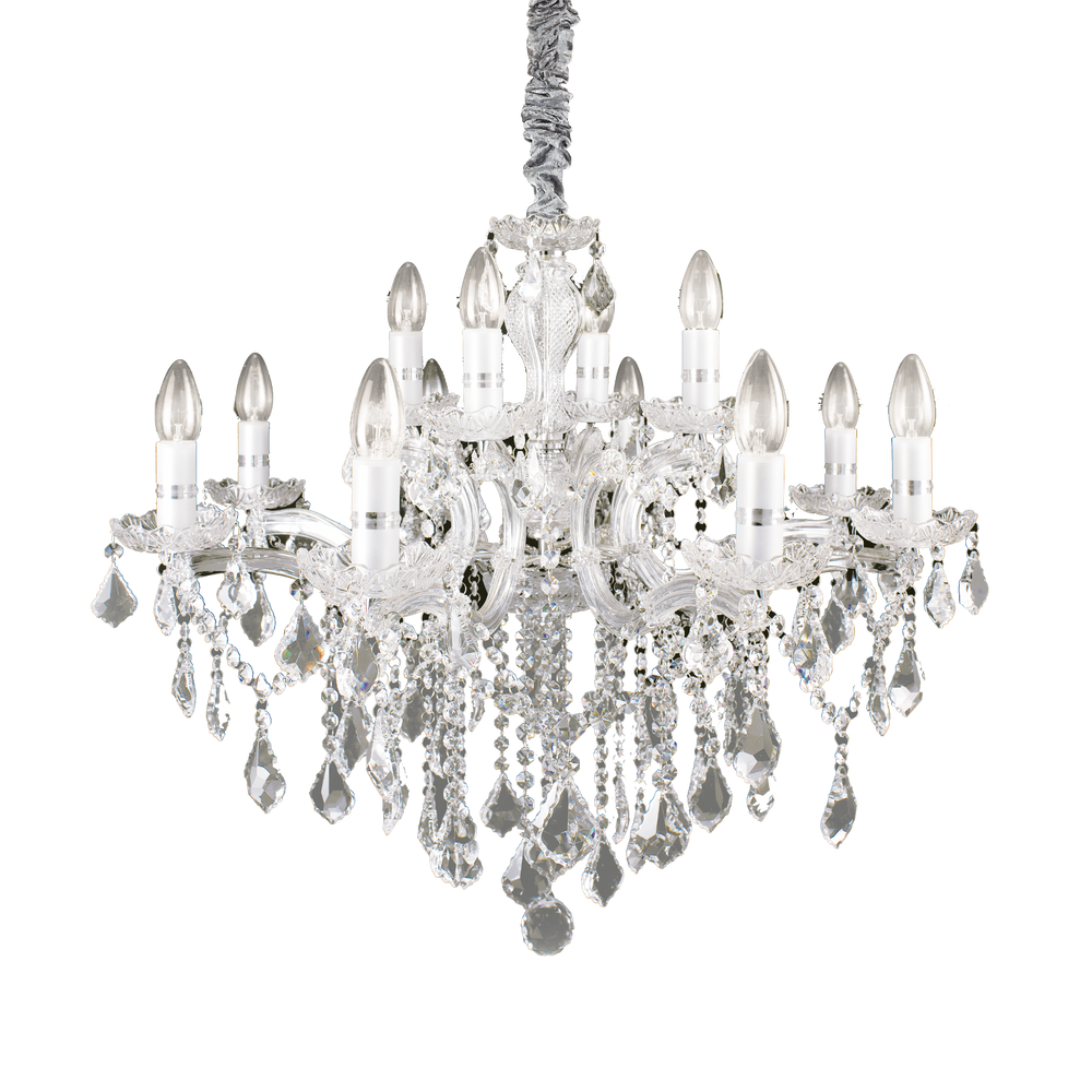 Lámpara colgante Ideal Lux Florian cromo cristal y cerámica 12 luces 480W Ø72cm 035604