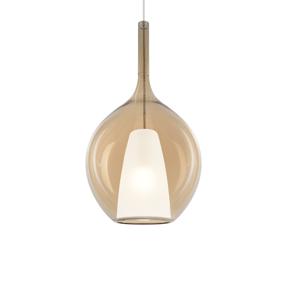 La lámpara colgante Kalique de Ideal Lux en acabado ámbar combina el diseño italiano contemporáneo con prestaciones excepcionales.