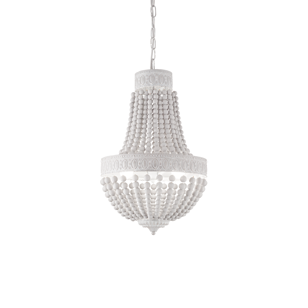 La lámpara colgante Monet de Ideal Lux en acabado blanco, fabricada en metal, madera, combina el diseño italiano contemporáneo con prestaciones excepcionales.