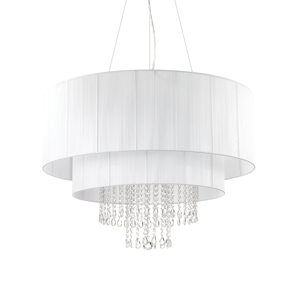 Lámpara colgante Ideal Lux Opera blanco cristal y tela 10 luces 600W Ø90cm 165011