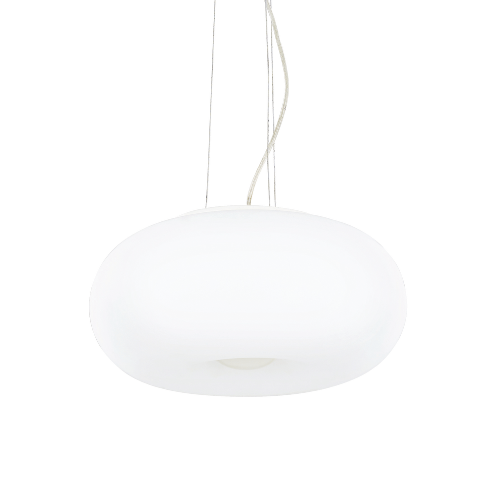 La lámpara colgante Ulisse de Ideal Lux en acabado blanco, fabricada en cristal, combina el diseño italiano contemporáneo con prestaciones excepcionales.