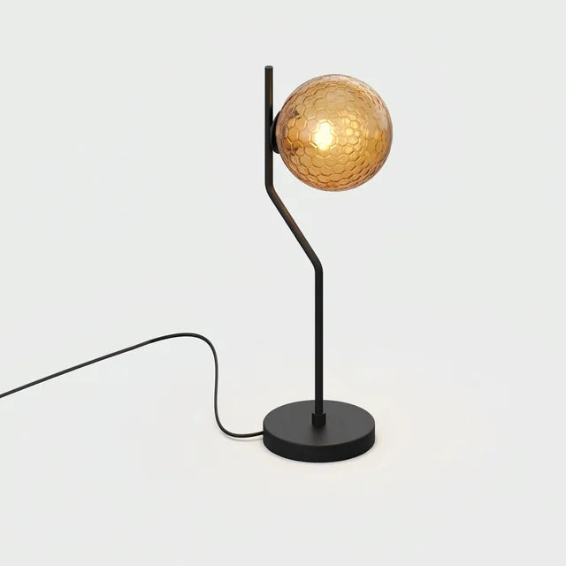 Kit completo listo para instalar — Incluye cuerpo lámpara de mesa ACB Maui con un elegante acabado en negro mate que combina con cualquier estilo decorativo, combinado con tulipa de cristal ámbar con textura facetada Parma que proyecta una luz cálida con matices dorados, creando ambientes acogedores e íntimos. Incorpora interruptor en el cable para encendido/apagado cómodo.