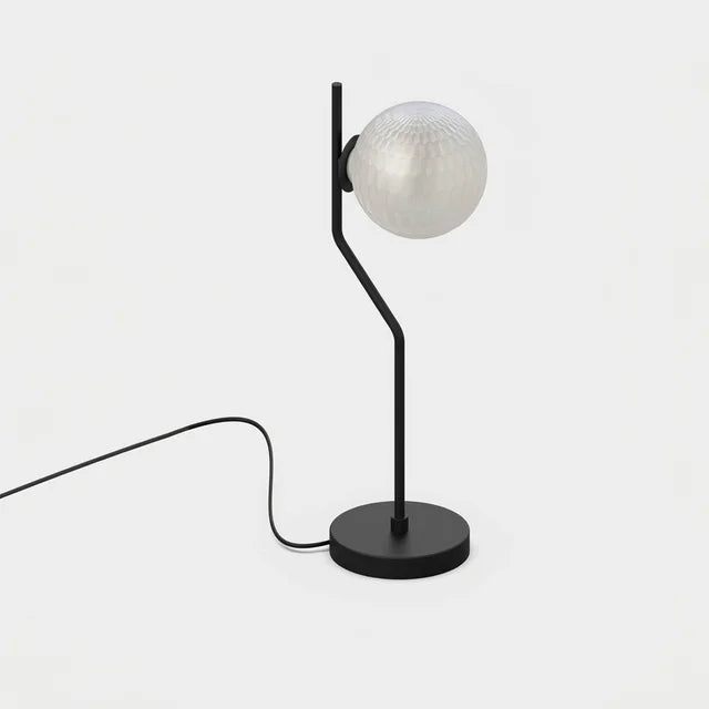 Kit completo listo para instalar — Incluye cuerpo lámpara de mesa ACB Maui con un elegante acabado en negro mate que combina con cualquier estilo decorativo, combinado con tulipa de cristal opal arenado con textura facetada Parma que distribuye la luz de forma suave y uniforme, ideal para iluminación ambiental sin deslumbramientos. Incorpora interruptor en el cable para encendido/apagado cómodo.