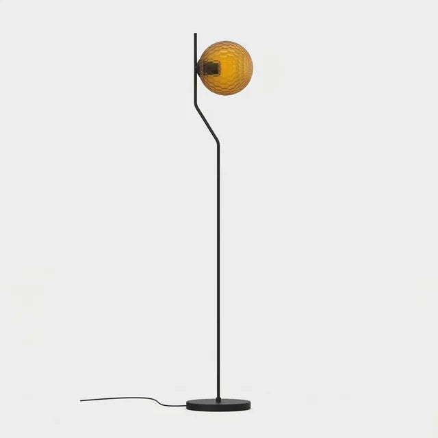 Kit completo listo para instalar — Incluye cuerpo lámpara de pie ACB Maui con un elegante acabado en negro mate que combina con cualquier estilo decorativo, combinado con tulipa de cristal ámbar con textura facetada Parma que proyecta una luz cálida con matices dorados, creando ambientes acogedores e íntimos.