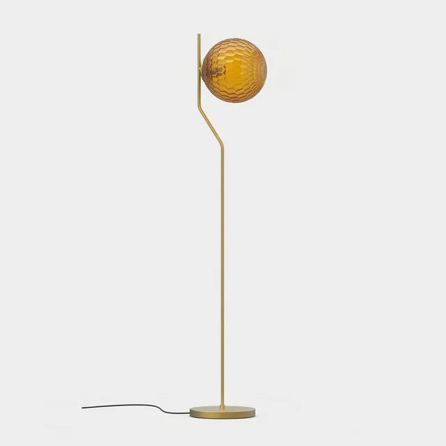 Kit completo listo para instalar — Incluye cuerpo lámpara de pie ACB Maui con un sofisticado acabado en oro viejo mate que aporta calidez y un toque vintage contemporáneo, combinado con tulipa de cristal ámbar con textura facetada Parma que proyecta una luz cálida con matices dorados, creando ambientes acogedores e íntimos.