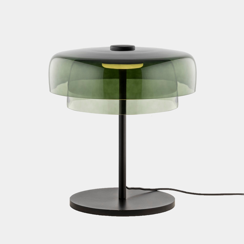 Perfecta para mesas auxiliares en salones, mesitas de noche, escritorios o zonas de lectura donde se quiera una luz decorativa de calidad. El cristal verde agrega un toque de color pero con elegancia, combinando muy bien con estilos modernos, decoraciones de inspiración natural o ambientes que usan acentos de color sutiles.