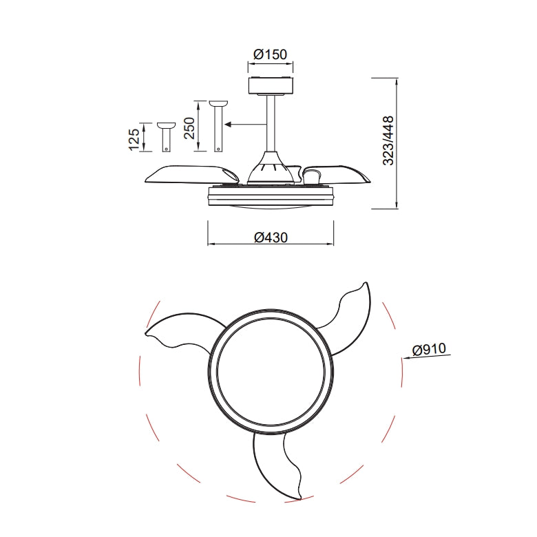 Lámpara LED 40W Ventilador 28W de color Blanco y fabricado en Acero / Acrilico de la colección Mantra North.