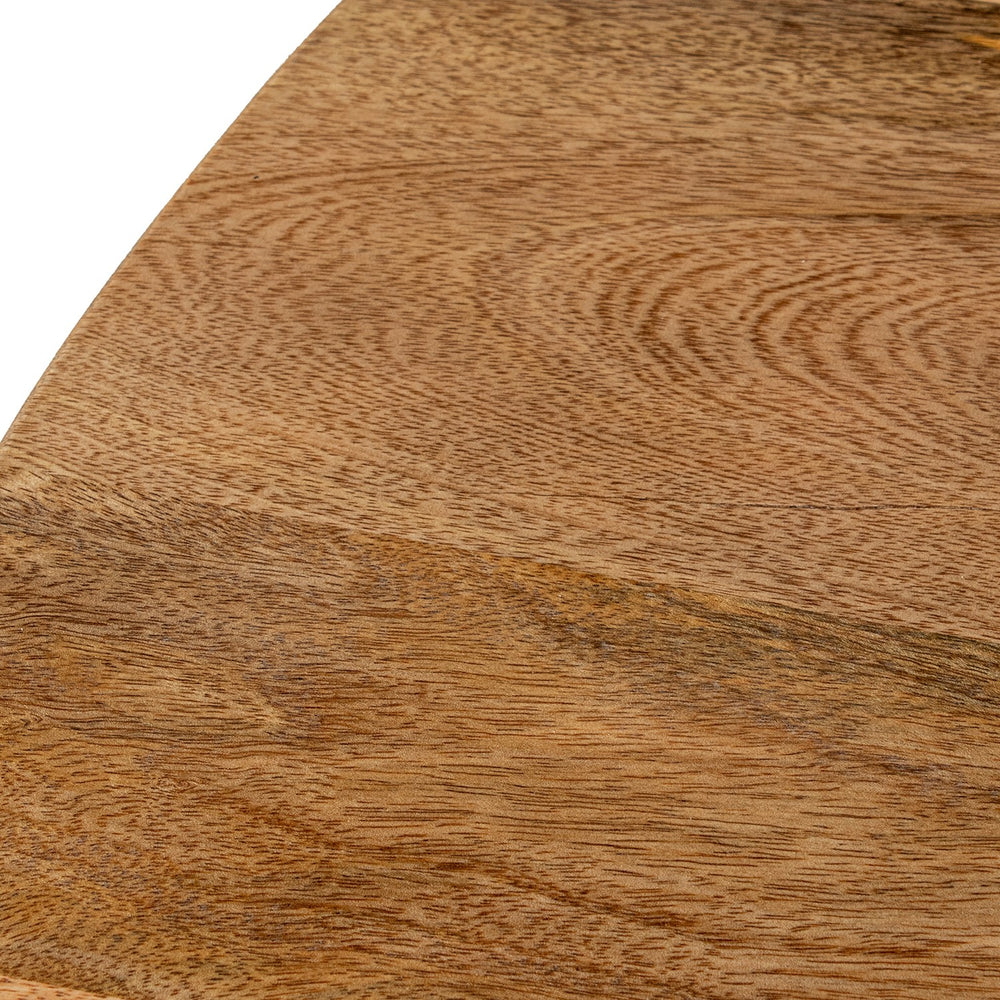 Fabricada en madera de mango maciza, esta mesa destaca por su resistencia y durabilidad, además de sus vetas únicas que aportan un carácter artesanal a cada pieza. El acabado natural resalta la nobleza del material y permite integrarla con facilidad en ambientes de estilo rústico, nórdico, mediterráneo o contemporáneo.