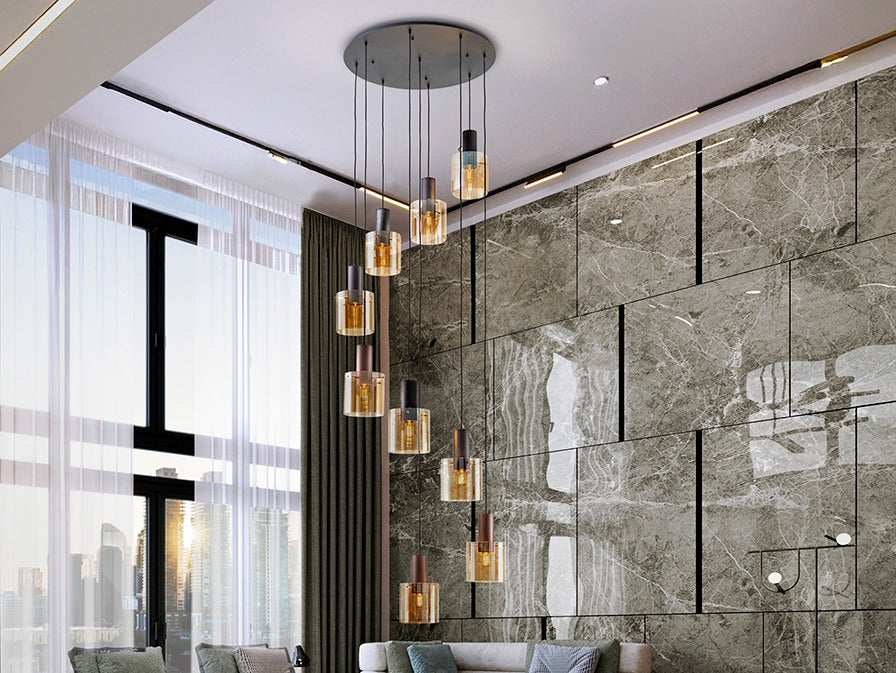 La lámpara de techo colgante Moka de Schuller es una pieza de iluminación decorativa que combina diseño industrial y calidez contemporánea. Con sus 9 luces distribuidas en una estructura de metal en tonos cobre, café y negro satinado, esta lámpara crea un punto focal impactante en comedores, salones amplios o espacios de doble altura.