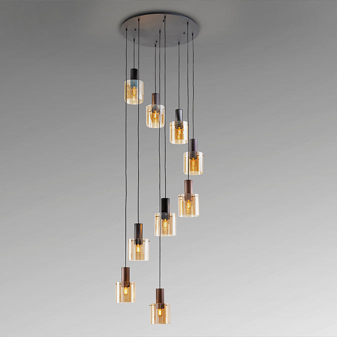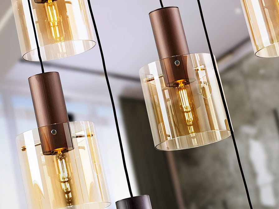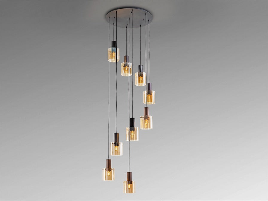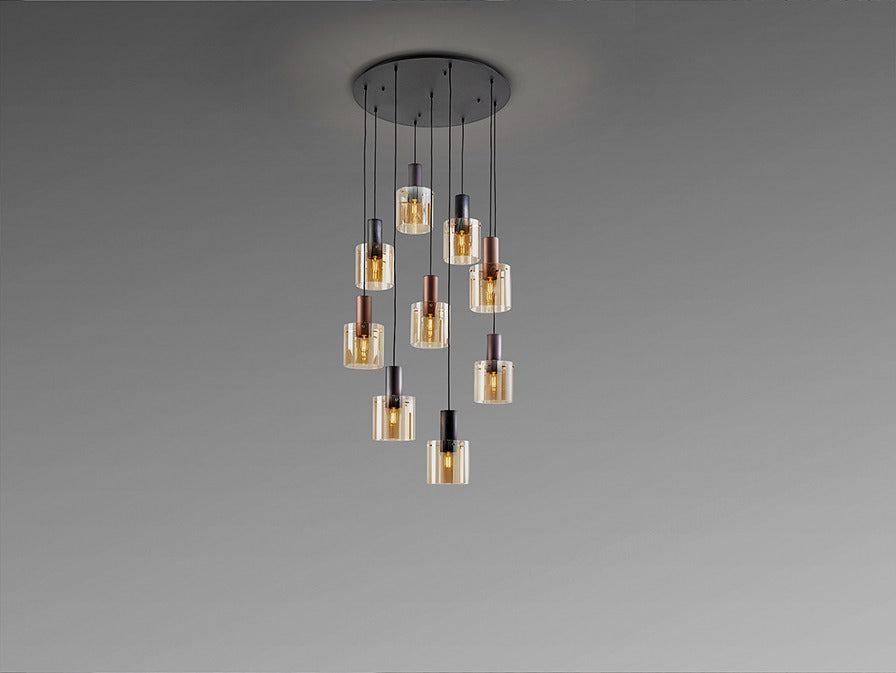 Moka Lámpara techo colgante 9 luces regulable metal cobre, café y negro satinado 237956