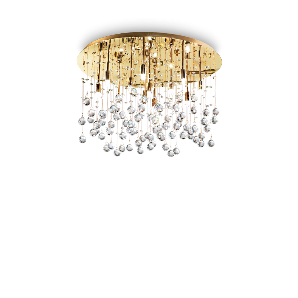 Plafón de techo Ideal Lux Moonlight dorado cristal y cerámica 12 luces 480W Ø60cm 082783