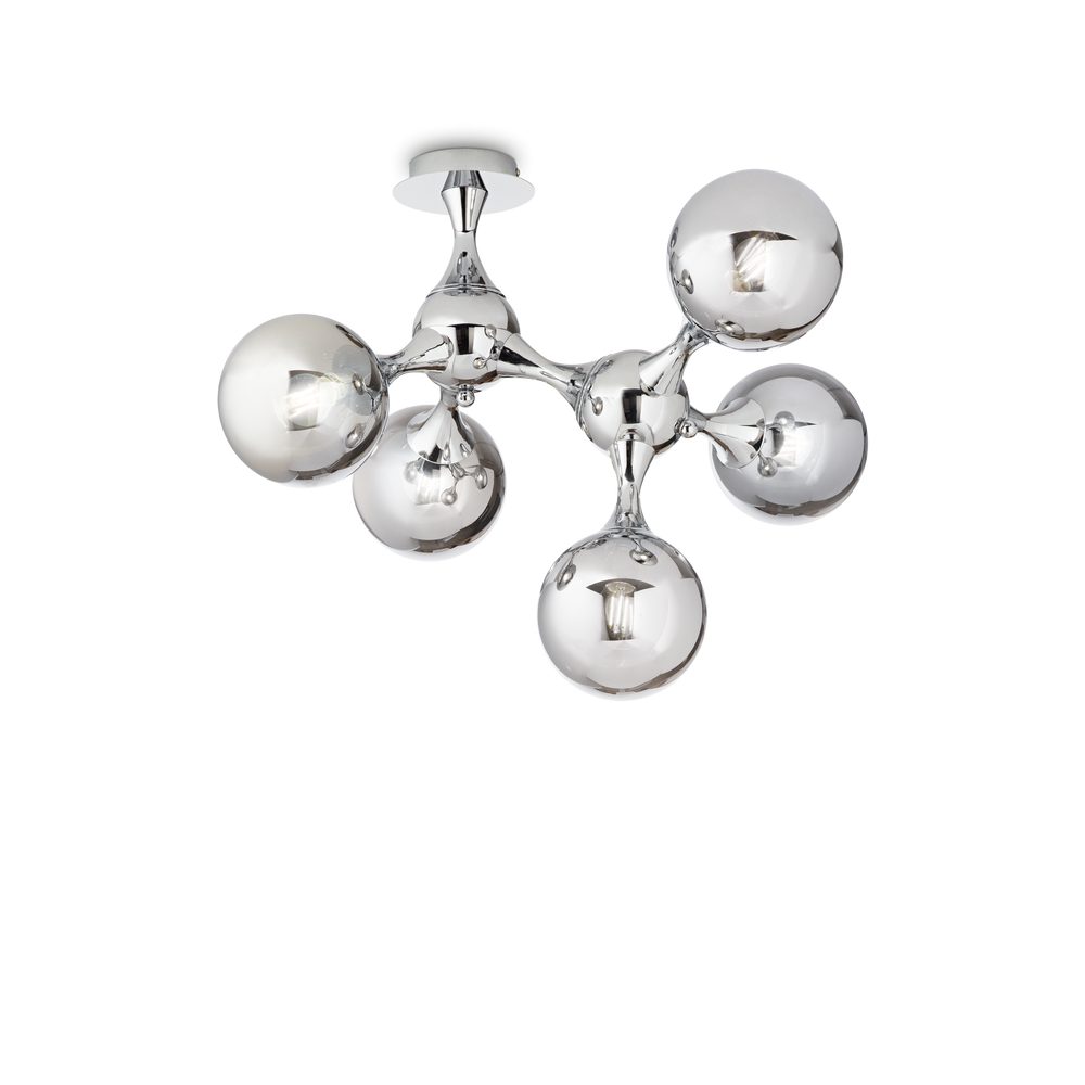 El plafón de techo Nodi de Ideal Lux en acabado cromo, fabricada en metal, cristal, combina el diseño italiano contemporáneo con prestaciones excepcionales.