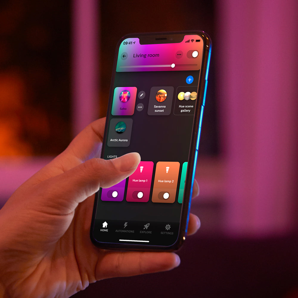 Philips Hue White and color ambiance: Disfruta de hasta 16 millones de colores y todos los tonos de luz blanca para crear el ambiente perfecto.
