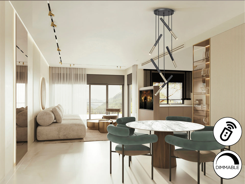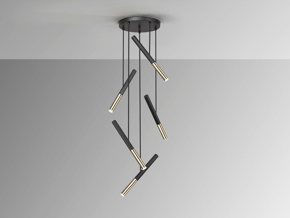 Lámpara de techo colgante Schuller Edna 5 luces negro y oro brillo 3000K regulable 451052D