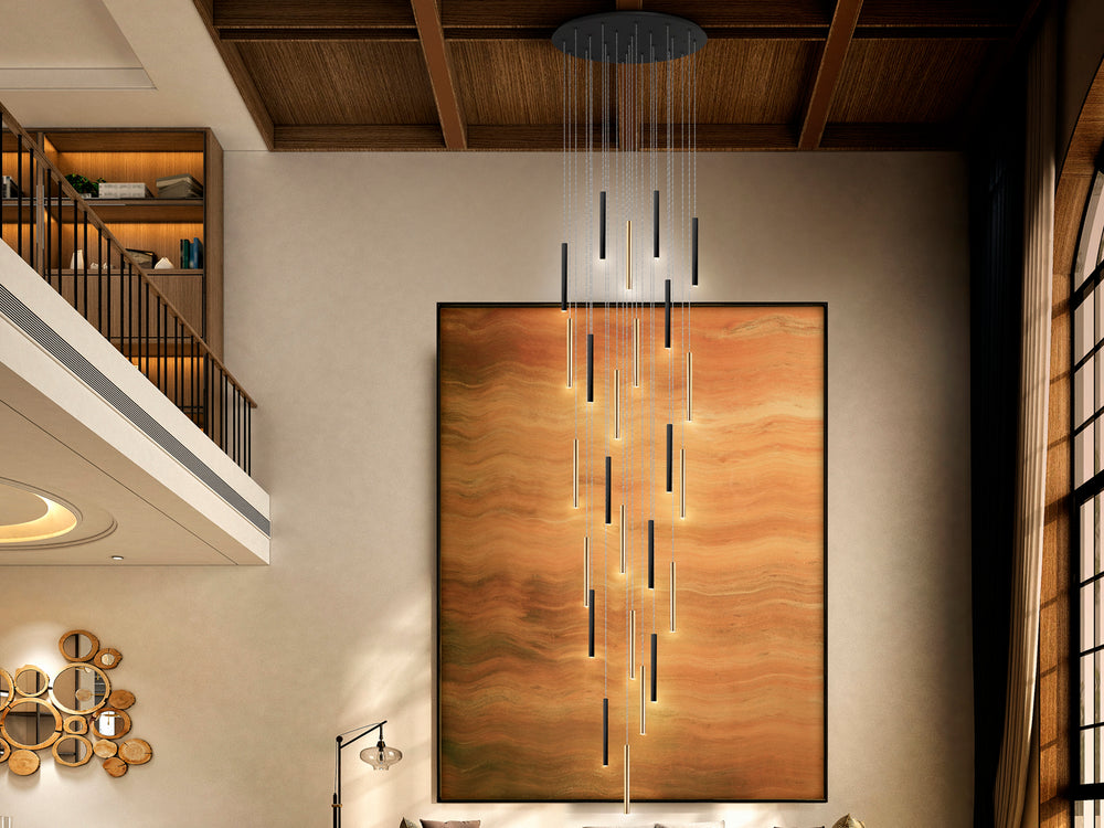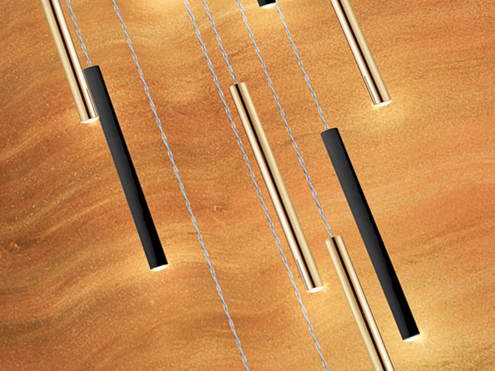 Diseño monumental con 25 luces en oro y negro