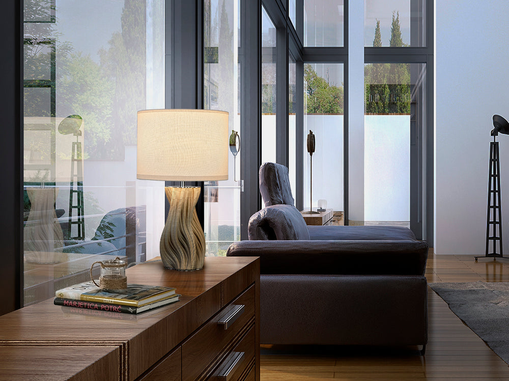 Lámpara de mesa Merlín de Schuller: sofisticación atemporal en cerámica gris impresa en 3D
