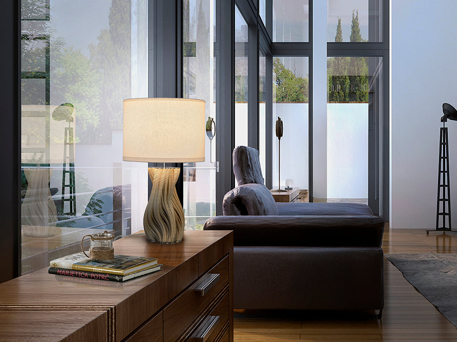 La lámpara de sobremesa Merlín de Schuller combina tecnología de fabricación avanzada con un diseño elegante y versátil. Su base de cerámica impresa en 3D acabado gris claro aporta sofisticación y neutralidad, integrándose perfectamente en cualquier estilo decorativo desde el nórdico hasta el contemporáneo.
