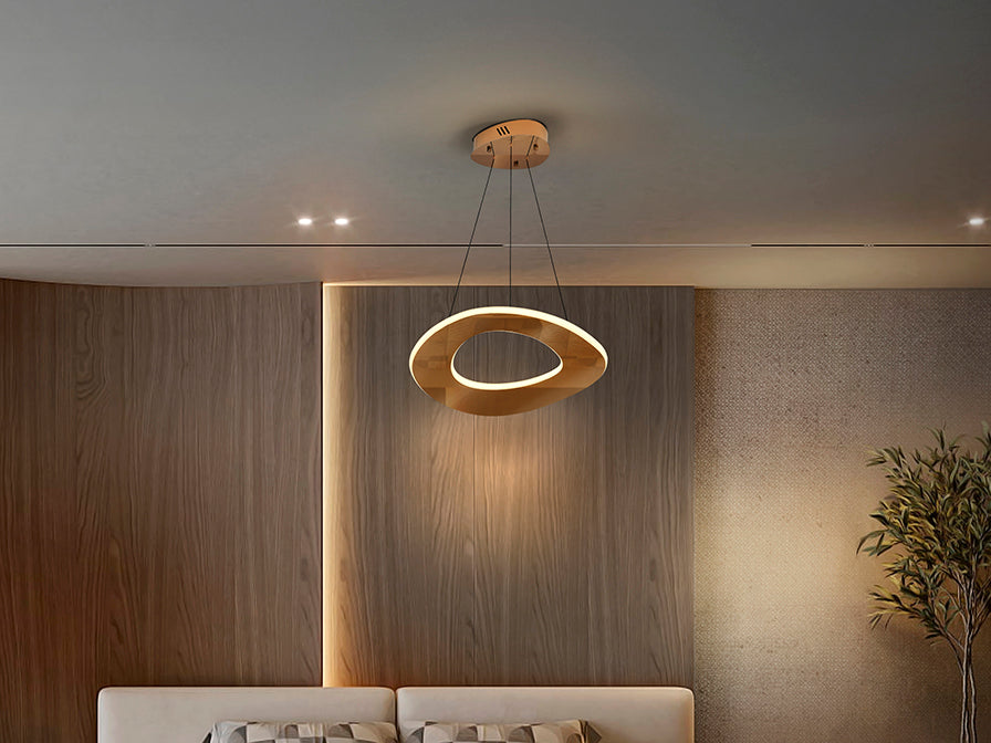 La lámpara Mirena incluye todo lo necesario para su instalación. Su sistema de altura regulable permite ajustarla a techos de diferentes alturas, mientras que su tecnología LED integrada elimina la necesidad de cambiar bombillas, ofreciendo miles de horas de iluminación sin mantenimiento.
