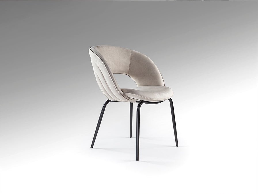 La silla Nim de Schuller es una pieza de mobiliario contemporáneo que combina diseño ergonómico con materiales de calidad. Su estructura en metal y tablero contrachapado curvado, con patas metálicas acabadas en negro y tapizado símil ante tono piedra, crea una silla cómoda y elegante ideal para comedores, cocinas o espacios de trabajo contemporáneos.